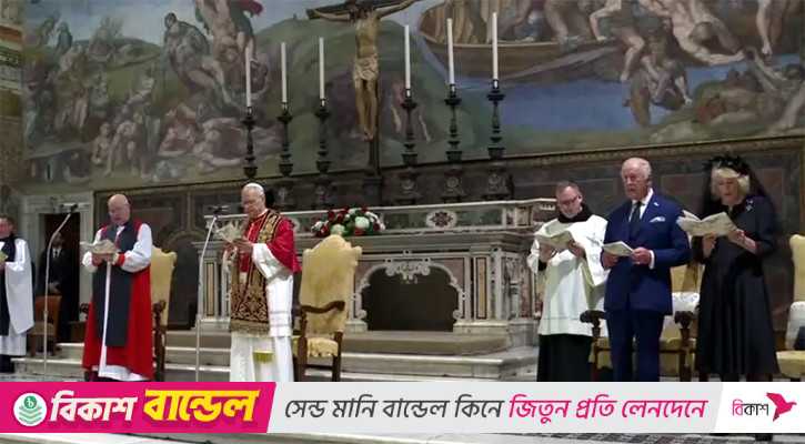 বিবিসির খবরে আরও বলা হয়, স্থানীয় সময় সকাল ১০টা ৪৫ মিনিটে রাজপরিবারের সদস্যরা ভ্যাটিকানের অ্যাপোস্টলিক প্রাসাদে পৌঁছান। সেখানে পোপ লিওর সঙ্গে রাজা ও রাণির একান্ত বৈঠক অনুষ্ঠিত হয়। পরে দুপুরে তারা সিস্টিন চ্যাপেলে আয়োজিত এক ধর্মীয় অনুষ্ঠানে যোগ দেন। ওই অনুষ্ঠানে প্রার্থনা পরিচালনা করেন পোপ লিও এবং ব্রিটেনের ইয়র্ক শহরের আর্চবিশপ।