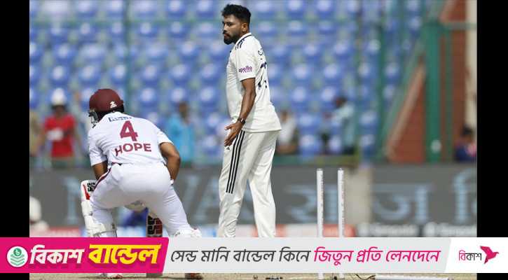 হোপের ব্যাটও তখন সমান দৃঢ়। ৫৮ ইনিংস পর তিনি তুলে নেন নিজের শতক, দলকে লাঞ্চে নিয়ে যান ২৫২/৩ তে। নতুন বল নেওয়ার পরও ভারতের সাফল্য আসে না, কিন্তু হঠাৎই এক নিচু লেন্থ বল ব্যাটে লেগে স্টাম্পে ফিরিয়ে দেন হোপ (১০৩)।