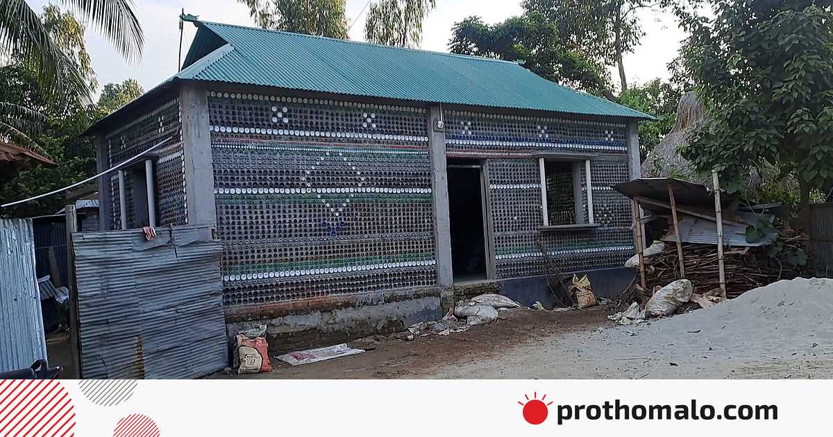 ফেলে দেওয়া প্লাস্টিকের বোতল দিয়ে ঘর তৈরি করেছেন আবদুল হাকিম | প্রথম আলো