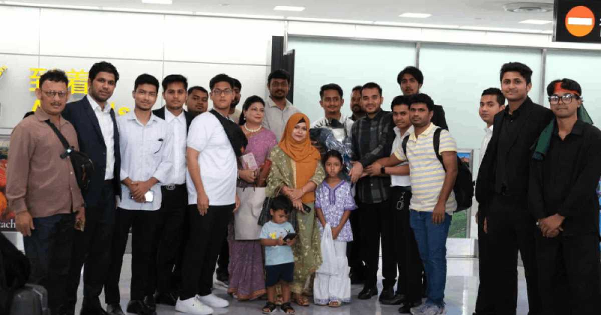 এ সময় জাপানে বসবাসরত প্রবাসী বাংলাদেশিরা তাদের ফুল নিয়ে অভ্যর্থনা জানান। এর আগে বৃহস্পতিবার (১১ সেপ্টেম্বর) দুপুর দেড়টার ফ্লাইটে প্রতিনিধি দলটি ঢাকার শাহজালাল আন্তর্জাতিক বিমানবন্দর থেকে জাপানের উদ্দেশে রওনা হয়।