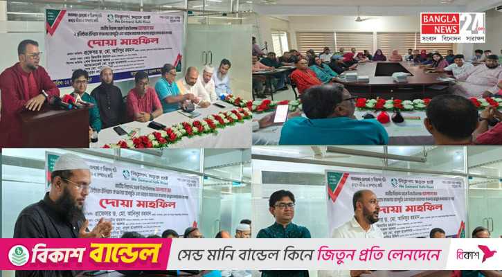আলোচনা সভা শেষে লন্ডনে চিকিৎসাধীন নিরাপদ সড়ক চাই (নিসচা) এর প্রতিষ্ঠাতা চেয়ারম্যান চিত্রনায়ক ইলিয়াস কাঞ্চনের সুস্থতা কামনা ও মরহুমা জাহানারা কাঞ্চনের আত্মার মাগফেরাত কামনায় দোয়া-মাহফিল অনুষ্ঠিত হয়।