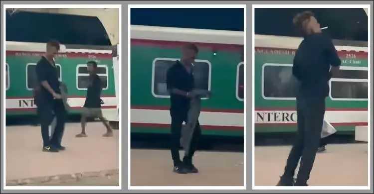 ভিডিওতে দেখা যায়, এক যুবক স্টেশনের প্ল্যাটফর্মে দাঁড়িয়ে সিগারেট টানছেন। কোমর থেকে কাপড়ে মোড়ানো ছুরি বের করে প্রকাশ্যে প্রদর্শন করছেন। পরে আবার কাপড়ে মুড়িয়ে কোমড়ে গুঁজে রাখছেন। রেলওয়ের বিভিন্ন ফ্যান গ্রুপসহ সামাজিক যোগাযোগ মাধ্যমে এই ভিডিওটি ছড়িয়ে পড়েছে।