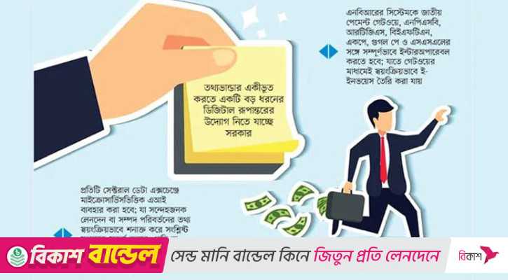 রাজস্ব আদায় বাড়ানো ও কর ফাঁকি রোধে সরকারি সংস্থাগুলোর তথ্যভান্ডার একীভূত করতে একটি বড় ধরনের ডিজিটাল রূপান্তরের উদ্যোগ নিতে যাচ্ছে সরকার। এর মাধ্যমে জাতীয় রাজস্ব বোর্ডকে (এনবিআর) পেমেন্ট গেটওয়ে, বেসরকারি খাতের ইআরপি (এন্টারপ্রাইজ রিসোর্স প্ল্যানিং), বাংলাদেশ ফাইন্যান্সিয়াল ইন্টেলিজেন্স ইউনিট (বিএফআইইউ) এবং দুর্নীতি দমন কমিশনের (দুদক) সঙ্গে সংযুক্ত করা হবে।