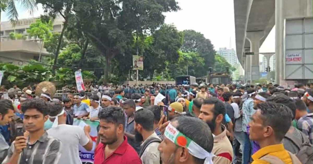 কাওরান বাজার এলাকায় দায়িত্বরত তেজগাঁও থানার উপ-পরিদর্শক (এসআই) মাহমুদুল হানান বলেন, ‘আন্দোলনকারীরা বর্তমানে রাস্তার পাশে অবস্থান নিয়ে বিক্ষোভ করছেন।’