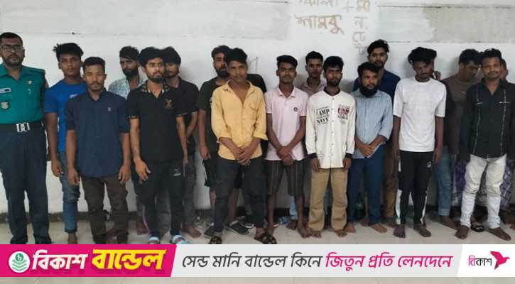 গ্রেপ্তাররা হলেন- সাকিবুল (২০), খায়রুল ইসলাম (২১), মোশাররফ (২১), মিজান (২৪), কামাল (৩০), জিসান (২২), ফারুক (২৩), রাশেদুল (৩৮), রায়হান (১৯), মামুন (২১), রাজিব রতন (১৮), টিপু (২৯), সালমান (২৭), সানি (২৬), আসিফ (২৫), আইচান ওরফে আহসান (৩০), আসাদুল হক (২৫) ও শামীম (৪২)।