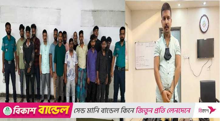 গ্রেপ্তাররা হলেন-জাহিদুল ইসলাম (৩৭), বাদশা (২৭), স্বাধীন (২৩), আলাউদ্দিন (৪৬), শিপন (২৭), রাসেল (২৪), সম্রাট (২৬), মিরাজ ইকবাল প্রিন্স (২৬), ফজলে রাব্বি রিফাত (২০), শাহ আলম (৩০), সিয়াম (২০), ফারুক (৩৫), সাজ্জাদ (৩০) ও সুমন (২৪) ।