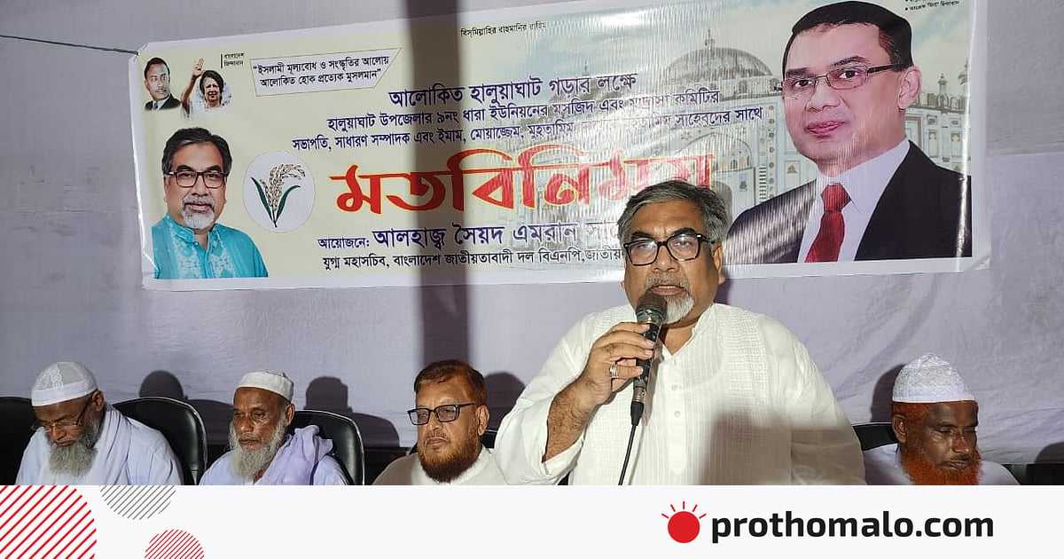 আজ রোববার দুপুরে ময়মনসিংহের হালুয়াঘাট উপজেলার ধারা উচ্চবিদ্যালয় মিলনায়তনে ধারা ইউনিয়নের আলেম ও ইমামদের সঙ্গে মতবিনিময় সভায় এমরান সালেহ এসব কথা বলেন।