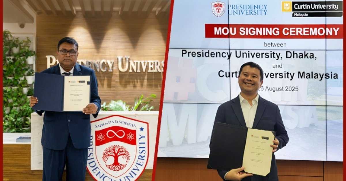 ঢাকার প্রেসিডেন্সি ইউনিভার্সিটি এবং অস্ট্রেলিয়ার কার্টিন ইউনিভার্সিটির মধ্যে একটি সমঝোতা স্মারক চুক্তি সই হয়েছে। মালয়েশিয়ার কার্টিন ক্যাম্পাসে অনুষ্ঠিত এই চুক্তি দুই শিক্ষা প্রতিষ্ঠানের মধ্যে উচ্চশিক্ষা ও গবেষণায় দীর্ঘমেয়াদি আন্তর্জাতিক সহযোগিতার নতুন দিগন্ত উন্মোচন করেছে বলে এক সংবাদ বিজ্ঞপ্তিতে বলা হয়।