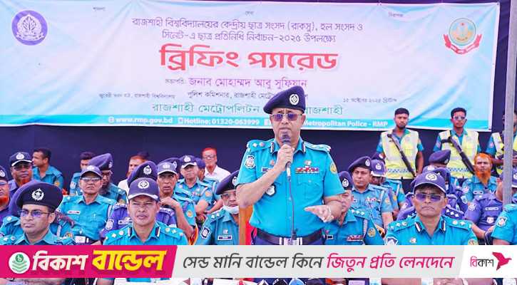রাজশাহী বিশ্ববিদ্যালয় কেন্দ্রীয় ছাত্র সংসদ (রাকসু) নির্বাচনে পুলিশ সদস্যদের ধৈর্য, নিষ্ঠা ও পেশাদারিত্বের সঙ্গে দায়িত্ব পালনের নির্দেশনা দিয়েছেন রাজশাহী মেট্রোপলিটন (আরএমপি) কমিশনার মোহাম্মদ আবু সুফিয়ান।
