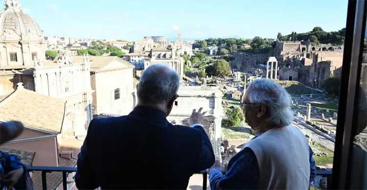 রোমের মেয়র রবার্তো গালতিরি বাংলাদেশের অন্তর্বর্তী সরকারের প্রধান উপদেষ্টা অধ্যাপক ড. মুহাম্মদ ইউনূসকে প্রাচীন রোমান সেনেট ভবন ও আশপাশের দুই হাজার বছর পুরোনো প্রত্নতাত্ত্বিক স্থাপনা পরিদর্শনে নিয়ে গেছেন।