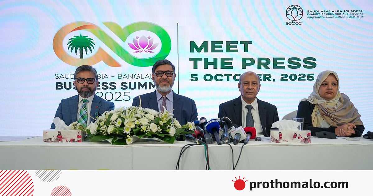 আজ রোববার রাজধানীর গুলশানে সিটি ব্যাংক সেন্টারে আয়োজিত সংবাদ সম্মেলনে এ তথ্য জানান নবগঠিত এসএবিসিসিআই সভাপতি আশরাফুল হক চৌধুরী। সংবাদ সম্মেলনে আরও উপস্থিত ছিলেন সৌদি-বাংলাদেশ চেম্বারের সহসভাপতি আহমেদ ইউসুফ ওয়ালিদ, পরিচালক উজমা চৌধুরী ও মেসবাউল আসিফ সিদ্দিকী।