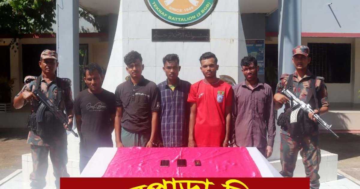 আটক পাঁচ জন হলো– সৈয়দ আলম (২৯), আব্দুল্লাহ (২২), রিদুয়ান হোসেন (২০), নুরুল আফসার (২০), আবদুল হাকিম (৪০)। তাদের বাড়ি টেকনাফ সদর ইউনিয়নের দক্ষিণ লম্বরি এলাকার মিঠাপানিরছড়ায়।